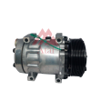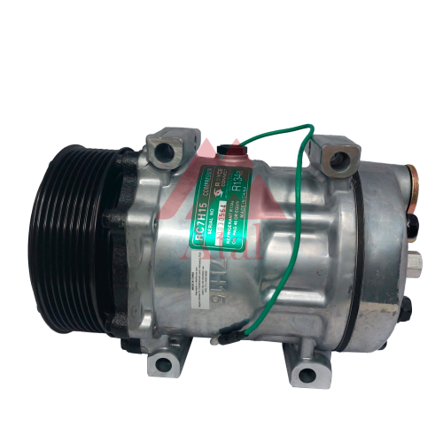 COMPRESSOR SANDEN 7H15 POLIA 8PK 119MM 24 VOLTS PASSANTE DESCARGA/SUCÇÃO TRASEIRA ENGATE / DIMENSÕES GERAIS: ALTURA: 155MM X COMPRIMENTO: 230MM X LARGURA: 155MM POLIA: DIÂMETRO (Ø): 133MM